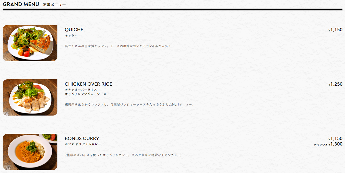 The signature BONDS CURRY (JP¥1,300), with its nine distinct spices, is not to be missed. This curry—a harmonious blend of spice and sweetness—offers a near-mythical quality that lingers in your memory long after your meal. Served alongside succulent chicken, it leaves you thoroughly satisfied and craving more.