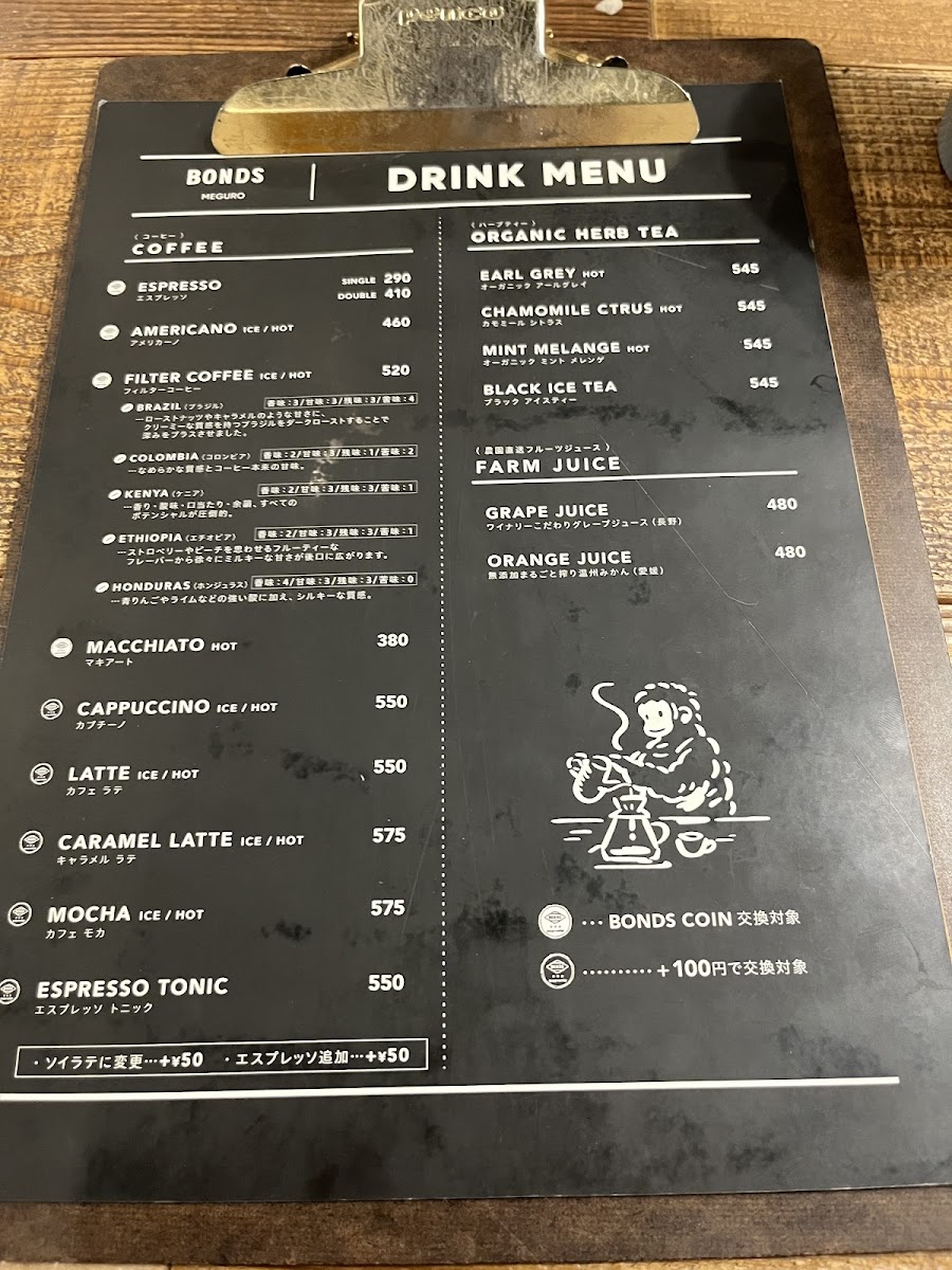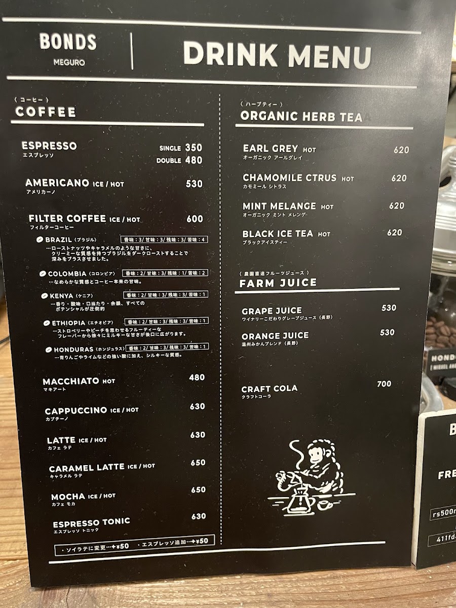 Step inside Bonds Meguro and immediately feel the inviting atmosphere envelop you. With its modern rustic decor and intimate seating arrangements, it's perfect for catching up with a friend or enjoying a peaceful moment alone. Although the space can be snug, the energy here is vibrant, making it a favorite spot in the neighborhood.